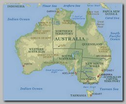 AUSTRALIA consists from the continent island AUSTRALIA and from the large island of Tasmania (68,000 km), is surrounded with a wide ocean and therefore has no borders conflicts and almost no substantial threat from abroad to the sovereignty and the economical development of the country.